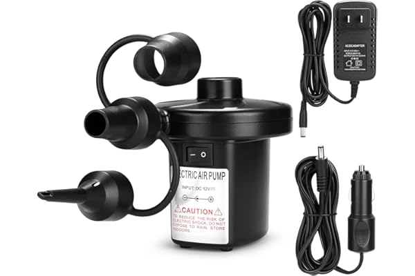 AGPtEK Portable Quick-Fill Air Pump with 3 Nozzles, 110V AC/12V DC, Perfect Inflator/Deflator Pumps for Outdoor Camping, Inflatable Cushions, Air Mattress Beds, Boats, Swimming Ring