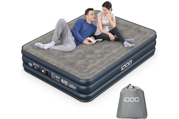 16 inch Queen Size Double-High Inflatable Mattress with Flocked Top - Easy Inflate, Waterproof, Portable Blow Up Bed for Home