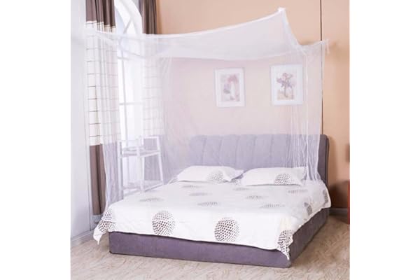 Nattey 4 Corners Princess Bed Curtain Canopy Canopies For Girls Boys Adults Bed Gift (Twin, White)