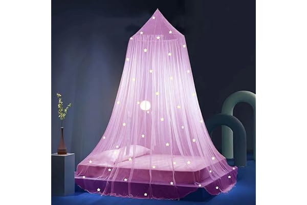 Bed Canopy for Girls with Glowing Stars - Princess Pink Baby Canopy For Bed, Netting Room Decor, Ceiling Tent, Canopy for Crib