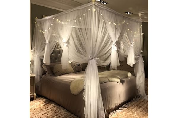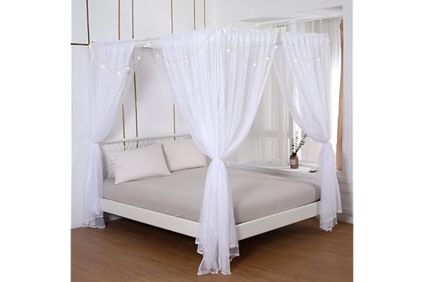 Joyreap 4 Corners Post Canopy Bed Curtain for Girls & Adults