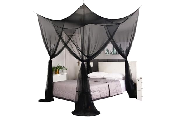 Four Corner Post Curtains Bed Canopy Elegant Mosquito Net Set, Stick Hook &Profession Rope for net, Screen Netting Canopy Curtains, Full/Queen/King/Black