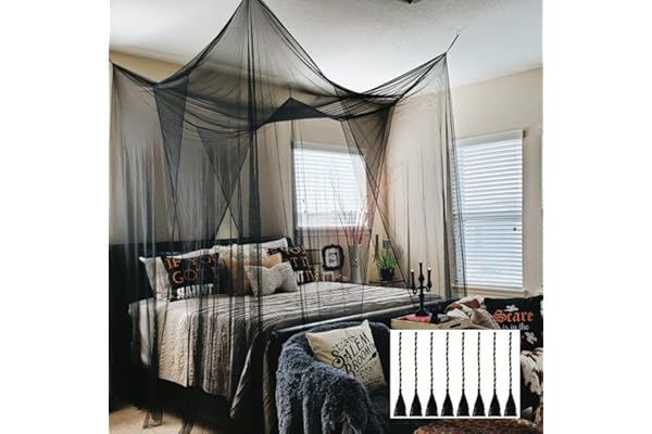 Canopy Bed Curtains Bed Drapes for Full Queen King Size Bed,Mosquito Net Bed Curtains for Patio Indoor Outdoor Net ,Black Bed Canopy Curtains for Gothic,Halloween Decoration
