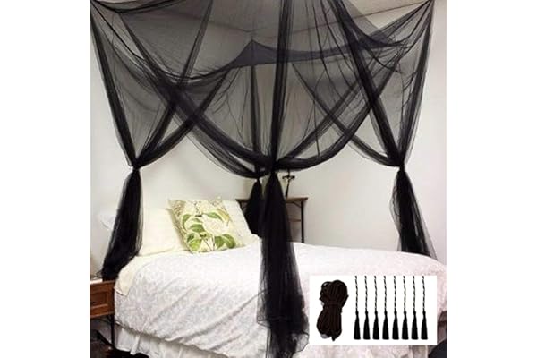 Twinkle Star 4 Corner Mosquito Net Black Canopy Bed Curtains for Full/Queen/King Size Bed Halloween Decoration