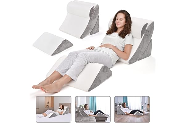 4pc Orthopedic Wedge Pillow Set for Sleeping – 45D Memory Foam Post-Surgery Pillows for Back, Neck, Head, Shoulders Support & More – Ergonomic