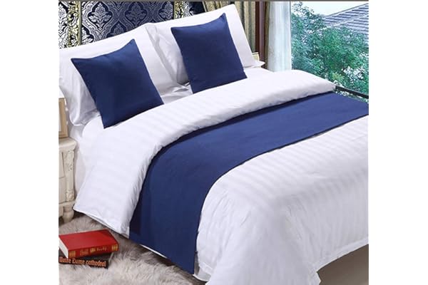 Mengersi Solid Bed Runner Scarf Protector Slipcover Bed Decorative Scarf for Bedroom Hotel Wedding Room(King, Navy)