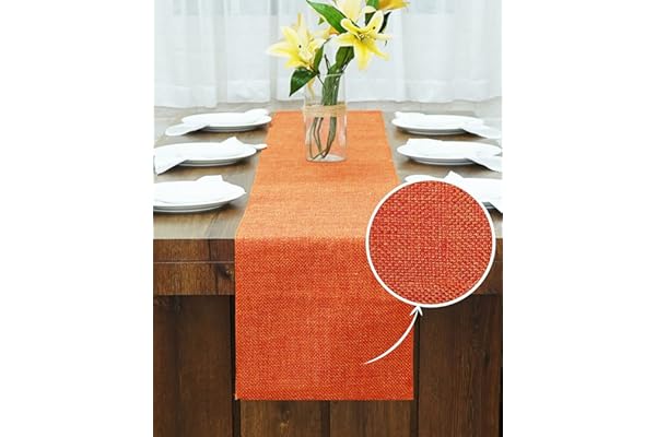 Parfair Dessin 13x48 inch 4Ft Burlap Jute Textured Polyester High Density 650 GSM Fabric Table Runner Dresser Dining Wedding Party Fall Decorations : Orange