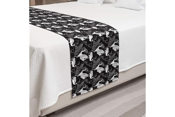 Monochrome Bird Pattern Silhouettes and Outlines Japanese Style, Decorative Accent Bedding Scarf for Hotels Homes and Guestrooms, Queen, White Black
