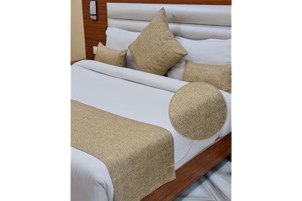 High Density Heavy Fabric - Bed Decoration for Home, Hotel, Resorts (Natural - 180x50 cm for Single Bed)