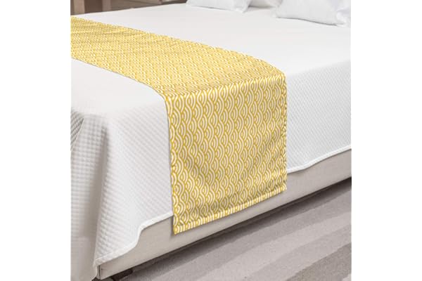 Sea Ocean Inspired Abstract Vintage Style Waves Linear Ornament Style, Decorative Accent Bedding Scarf for Hotels Homes and Guestrooms, Queen, Marigold White