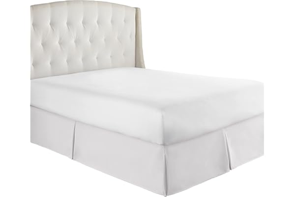15-Inch Tailored Drop Easy Fit - Bed Skirt for Queen Beds - Center & Corner Pleats (Queen, White)