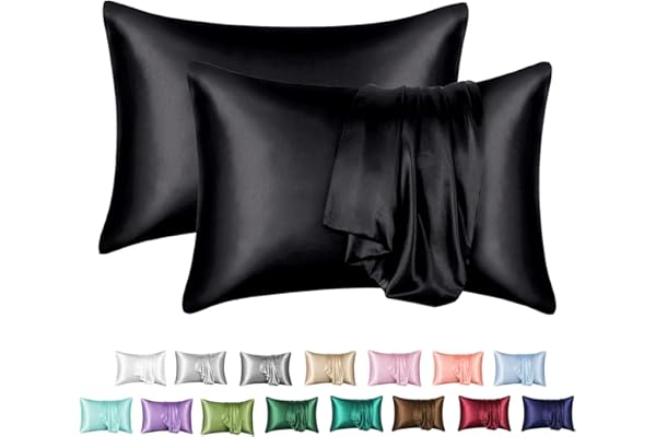 Silk Satin Pillowcase 2 Pack, Queen Size Pillow Cases Set of 2, Silky Pillow Cover with Envelope Closure (20x30, Black)