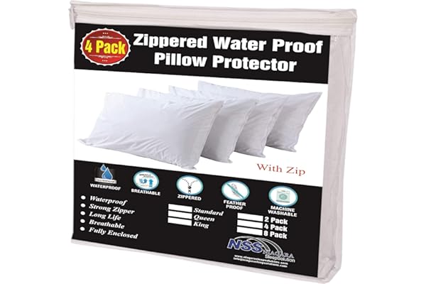 Utopia Bedding Waterproof Pillow Protector Zippered (4 Pack) Queen