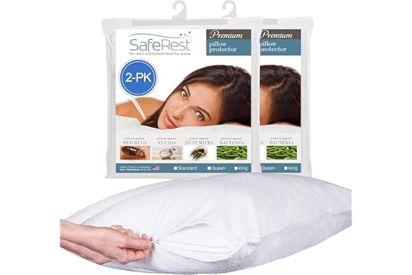 SafeRest Premium Hypoallergenic Bed Bug Proof Zippered Waterproof Pillow Protector (1) Standard Size