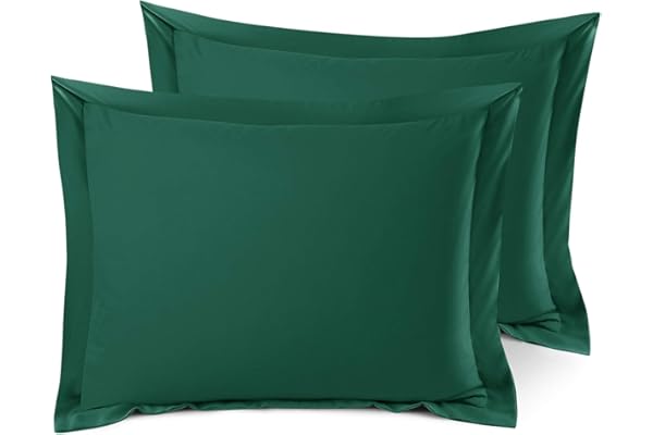 Double Brushed Microfiber Pillow Covers - Hotel Style Premium Bed Pillow Cases, with 1.5” Decorative Flange, Standard 20"x26" - Hunter Green