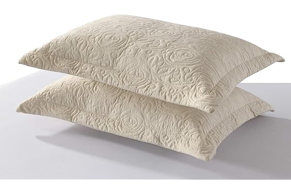 Queen Size Decorative Microfiber Pillow Shams Set, Standard Size Beige