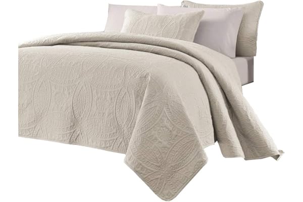 Home Collection 3pc Full/Queen Over Size Elegant Embossed Bedspread Set Light Weight Solid Beige New
