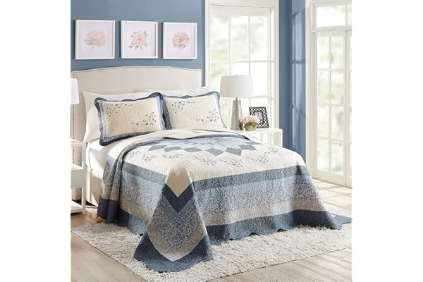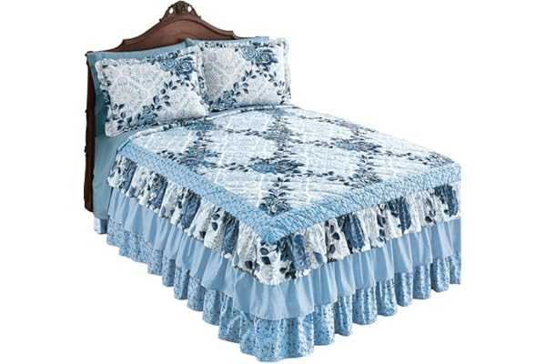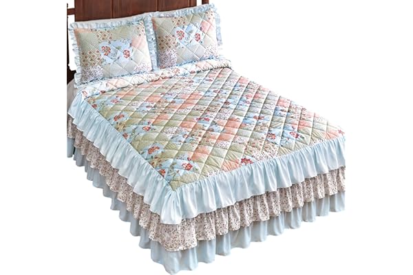 Collections Etc Floral Patchwork Triple Ruffle Diamond Quilted Bedspread