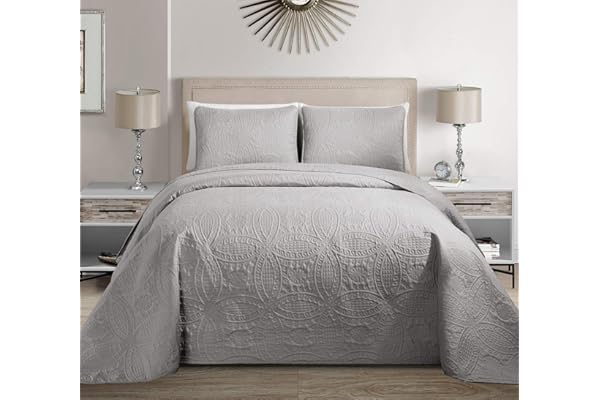 MK Home Mk Collection Solid Embossed Bedspread Bed Cover Over Size (Silver, King/California King)