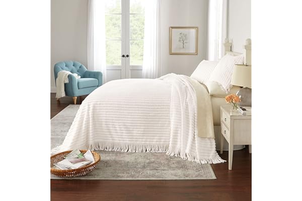 SUPERIOR 100% Cotton Fleur De Lis Matelasse Twin Bedspread