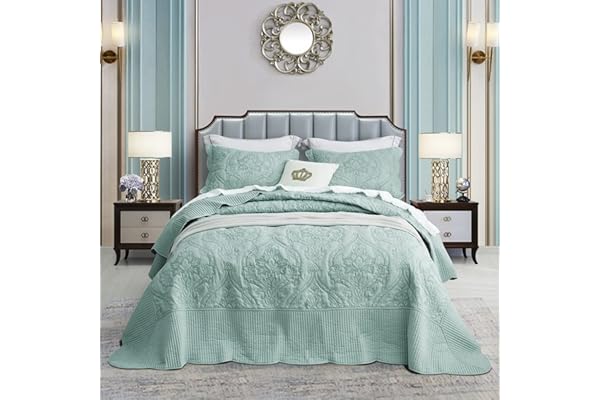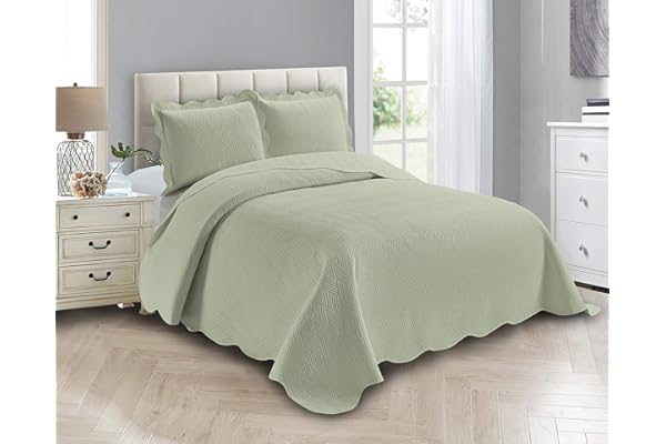 Linen Plus Luxury Oversized Coverlet Embossed Bedspread Set Solid Light Green Full/Queen Bed Cover New # Ashley