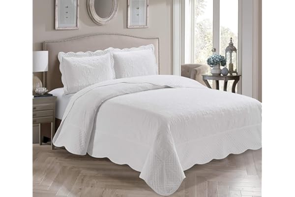 Home Collection 3 Piece King/California King Over Size Embossed Solid White Color Coverlet Bedspread New # Veronica