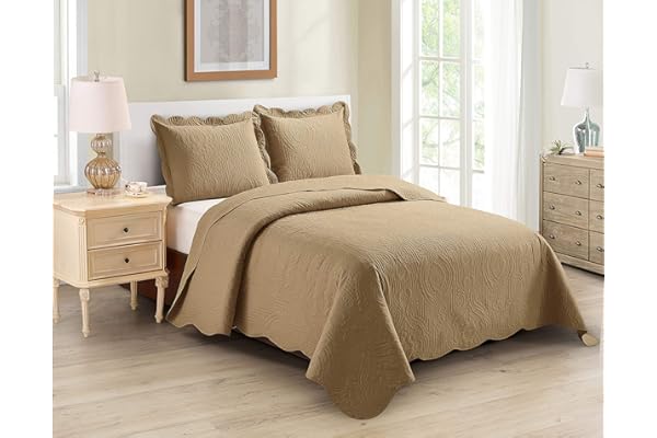 Home Collection 3pc King/Cal King Over Size Luxury Embossed Bedspread Set Light Weight Solid Taupe New