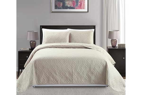 Home Collection 3pc Full/Queen Over Size Elegant Embossed Bedspread Set Light Weight Solid Beige New