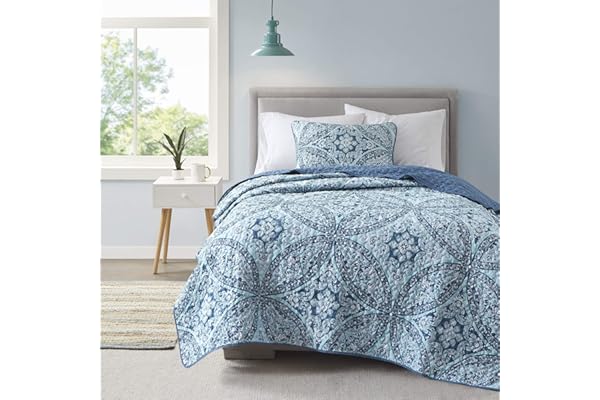 Lightweight, Coverlet Bedspread Bedding, Matching Shams, Twin/Twin XL (66 in x 90 in) Gloria, Damask Aqua 2 Piece