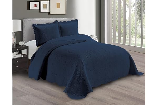Linen Plus Embossed Coverlet Bedspread Set Oversized Solid Navy Blue King/California King Bed Cover Bedding New # Dana