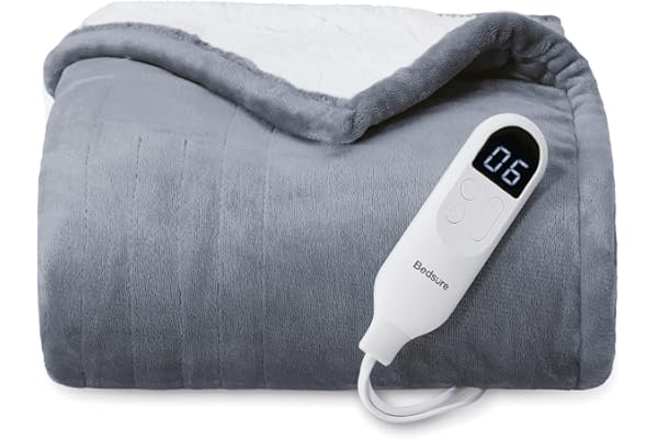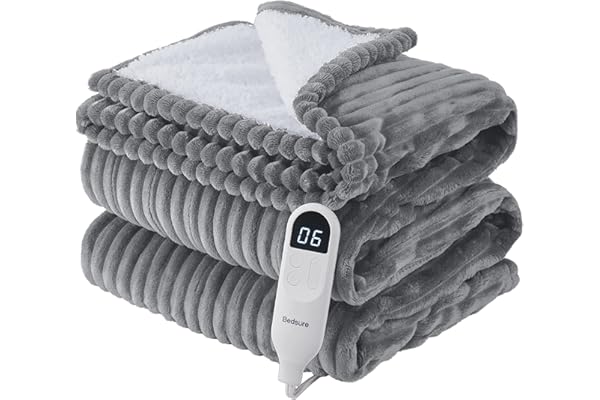 Soft Fleece Electric Blanket, 6 Heat Settings Heating Blanket with 4 Time Settings, 3hrs Timer Auto Shut Off (50×60 inches, Grey)