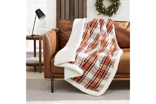 Throw Blanket, Reversible Sherpa Fleece Bedding, Home Decor for All Seasons (Edgewood Red, Throw)