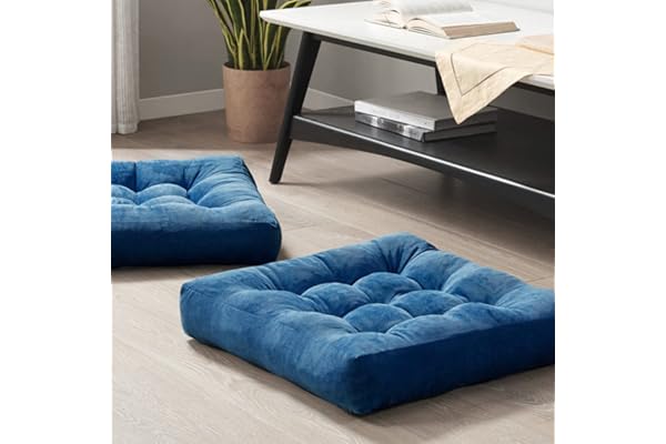 Square Meditation Pillow for Seating on Floor Solid Thick Tufted Seat Cushion Meditation Cushion for Yoga Living Room Sofa Balcony Outdoor, Navy, 22x22 Inch