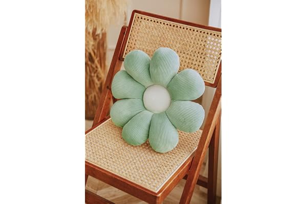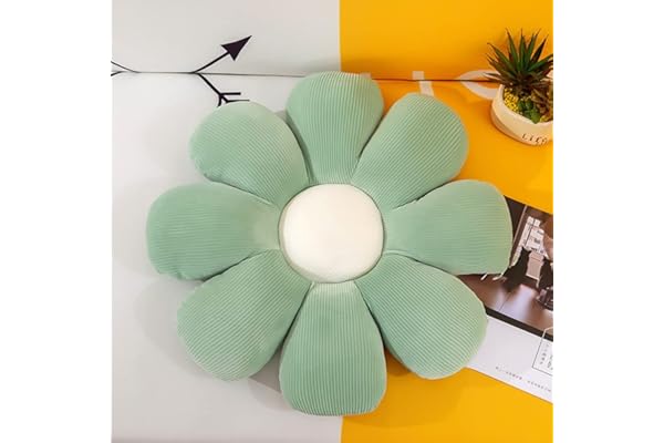 Home Decorative Daisy Seating Cushion Plush Flower Butt Cushion Corduroy Flower Pillow for Bedroom Living Room Sofa Chair (Green, 15.75")
