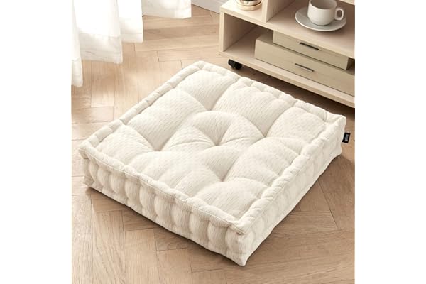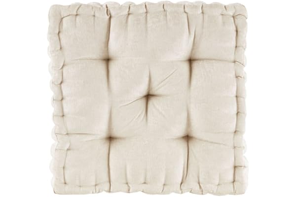 Square Floor Pillow Seating Chenille Meditation Cushion, Thick Tufted Pillows for Living Room Yoga Bedroom Sofa, Beige, 20"x20"x5.5"