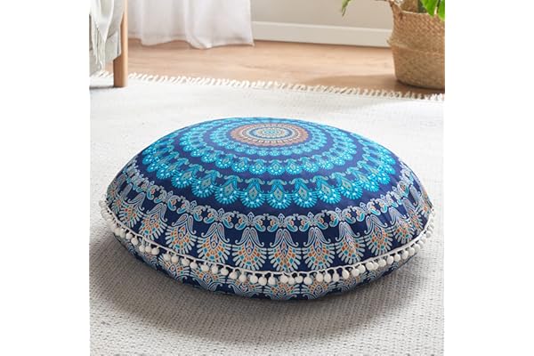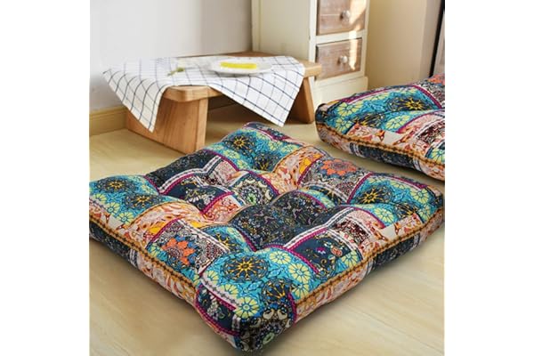 Square Bohemian Mandala Cotton Linen Indian Style Cushion Pillow for Yoga Living Room Balcony Kids Playing Room Party Outdoor Decoration, 22x22 Inch