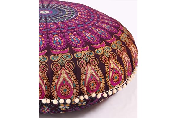 Cushion Cover - Pouf Cover Round Bohemian Yoga Decor Floor Cushion Case- 32" Magenta