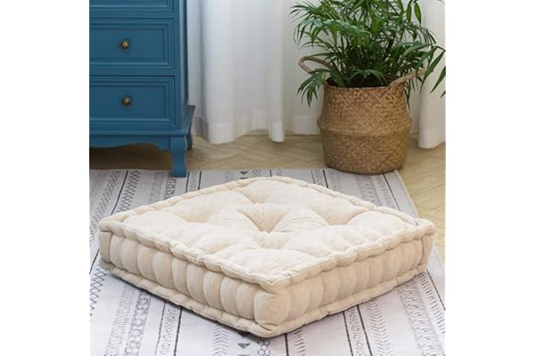 Large Floor Cushion, Square Floor Pillows Seating for Adults,Chenille Thick Meditation Cushion for Yoga Living Room Balcony Outdoor Tatami,20x20 Inch,Beige