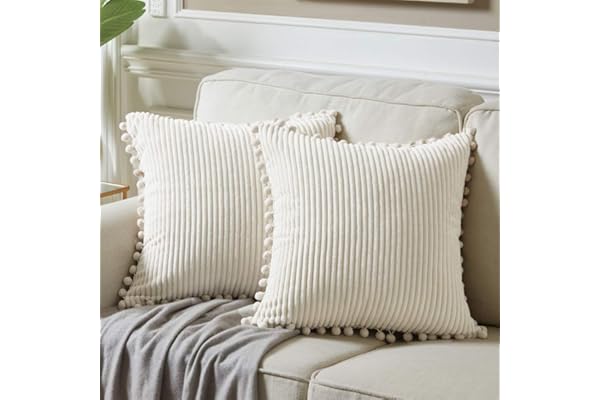 Soft Corduroy Accent Solid Square Cushion Case Set for Couch Sofa Bedroom Car Living Room (18x18 Inch/45x45 cm, Cream)
