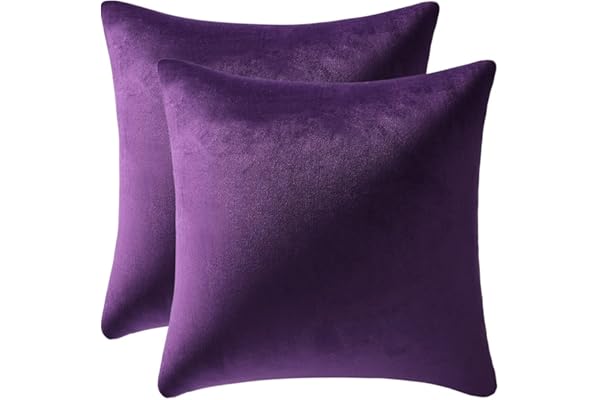 DEZENE 18x18 Throw Pillow Cases Purple: 2 Pack Cozy Soft Velvet Square Decorative Pillow Covers for Farmhouse Home Decor