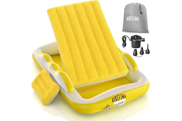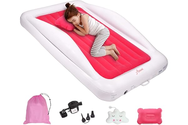 Airefina Portable Toddler Air Mattress with Electric Pump, Inflate in 1 Min, Kids Air Bed with Safety Bumpers for Home Travel Camping Use, Children Blow Up Mattress