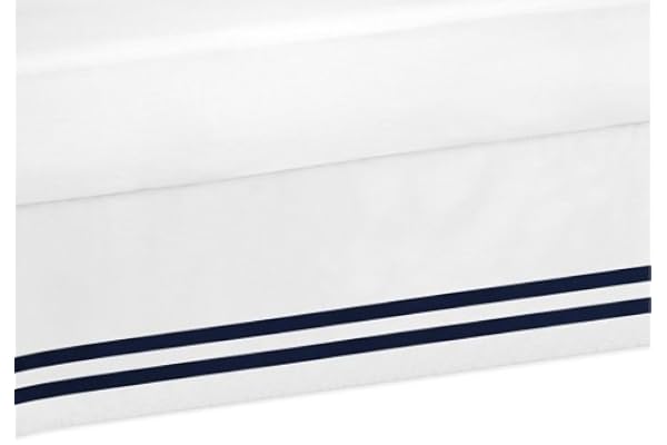 Sweet Jojo Designs Navy and White Queen Bed Skirt for Anchors Away Nautical Boys Bedding Sets