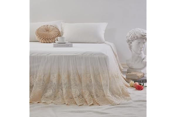 Brandream Lace Bed Skirt Queen Size Cream White 18 Inch Drop Romantic Dust Ruffle Split Corners Bed Sheets Cover