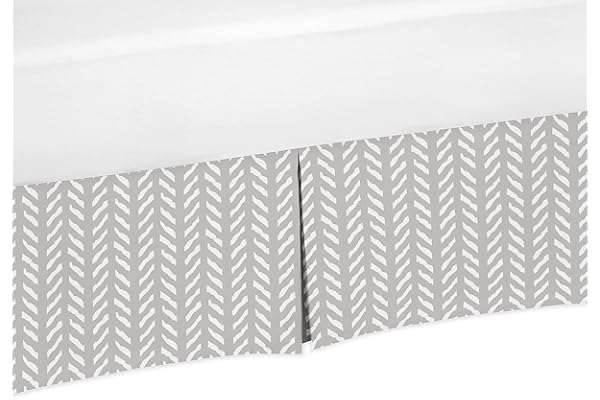Sweet Jojo Designs Grey and White Boho Herringbone Arrow Pleated Queen Bed Skirt Dust Ruffle for Gray Woodland Forest Friends Collection