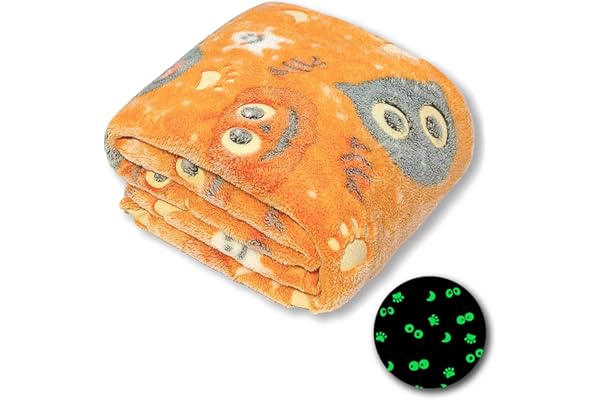 Glow in The Dark Blanket, Premium Super Soft Warm Cozy Furry Throw Blanket, Unique Gifts for Boys Girls Grandkids Teens, 50" x 60" Orange