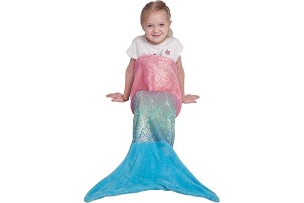 Kids Mermaid Tail Blanket, Girls Toddlers Mermaid Toys, Child Mermaid Blanket with Rainbow Ombre Glittering Fish Scale Design, Little Mermaid Gifts for Girls