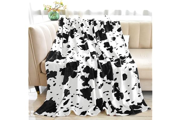 Soft Fleece Throw Blanket with Cow Print for Twin Size Bed, Couch, Sofa (Cowhide, Twin Size 60*80 Inch)