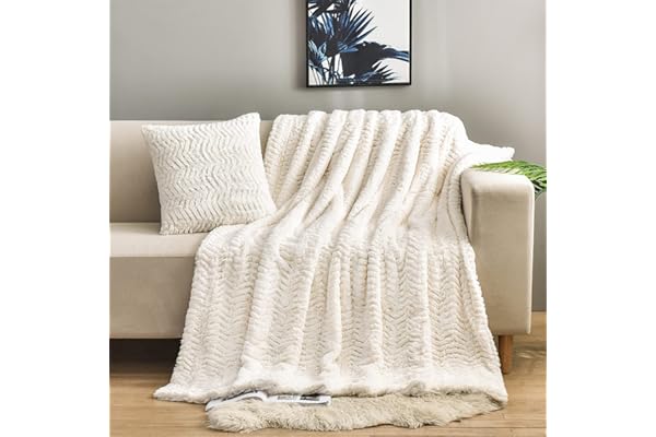 Soft Fuzzy Fluffy Cozy Blanket Plush Furry Comfy Warm Blanket for Couch Bed Chair Sofa Bedroom Women Teen Girls Gift(Ivory,50" x 63")