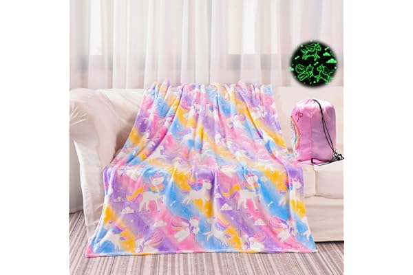 Glow in The Dark Blanket Unicorns Gifts for Girls Kids Throw Pink Rainbow Luminous Blanket Soft Flannel Blanket Toys for 1-10 Year Old Girls