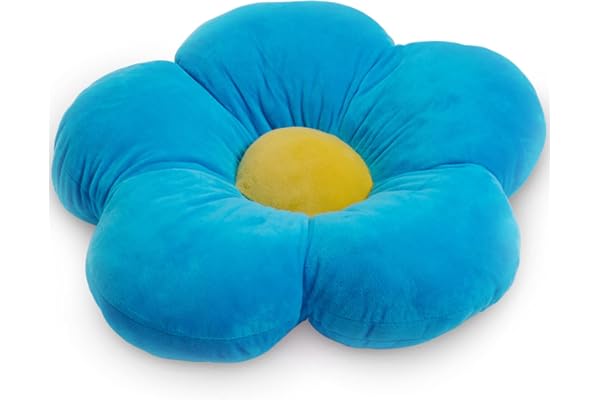 Butterfly Craze Large Blue Daisy Pillow: Flower-Shaped Lounge Pillow, Seating Cushion